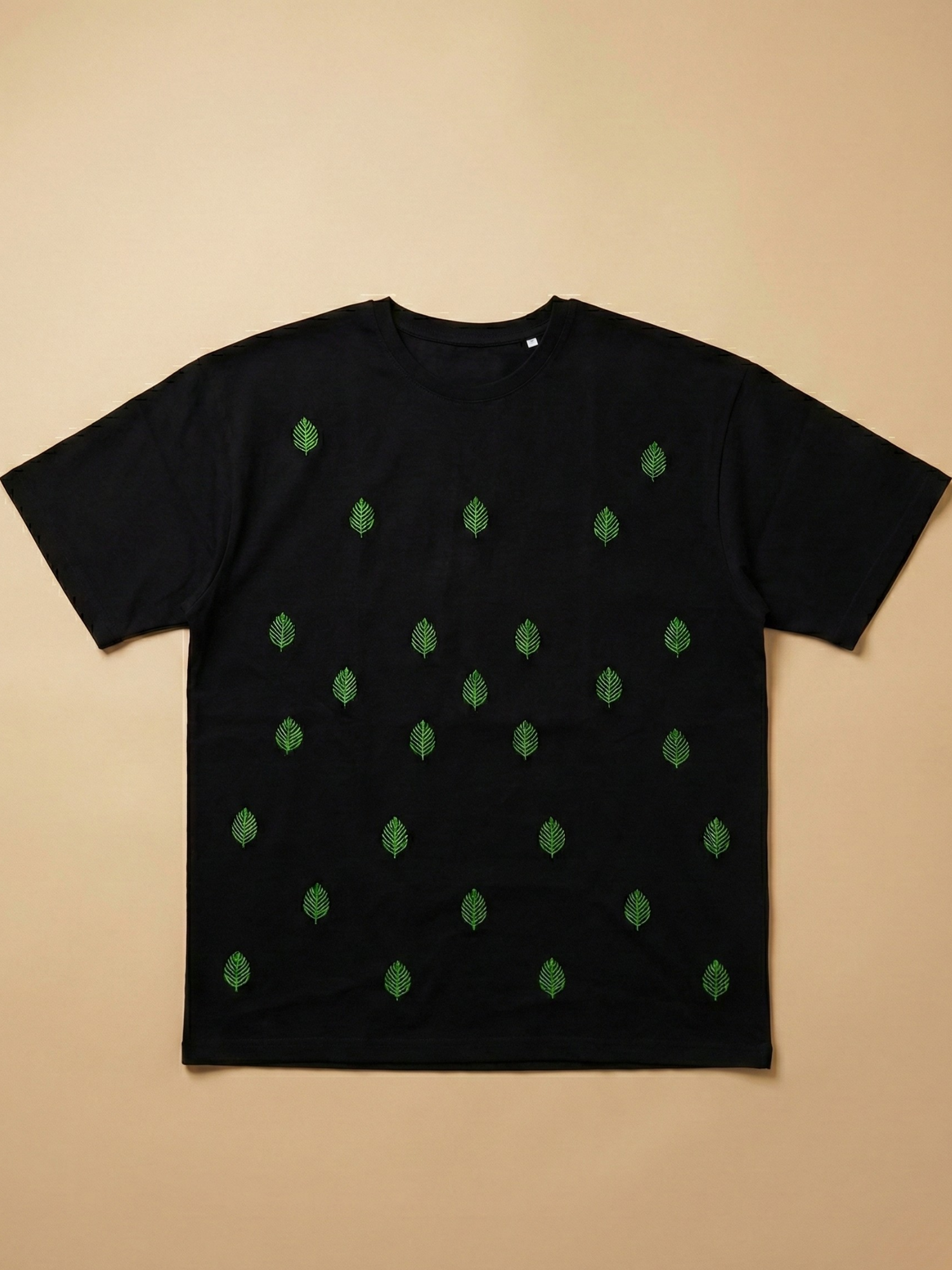 A refined oversized tee featuring scattered vine-leaf embroidery across the body, crafted for understated elegance. Made from premium 240 GSM French Terry cotton, this design blends everyday comfort with a calm, nature-inspired aesthetic.